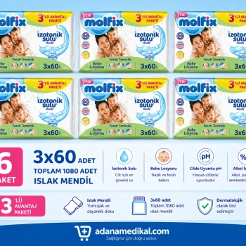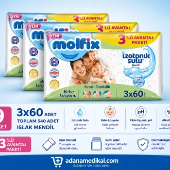 Molfix İzotonik Sulu Islak Mendil 3x60 (180 Adet) – Ferah Temizlik, Hassas Ciltlere Uygun