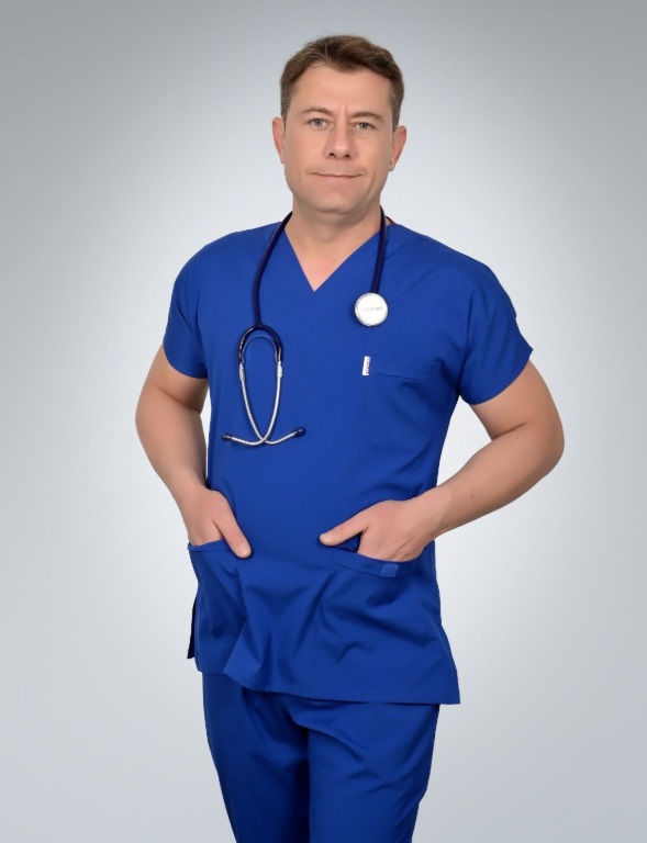 Formed Likralı Kumaş Erkek Saks Mavisi Doktor Hemşire Forması: Konfor ve Şıklıkla Gelen Profesyonellik!