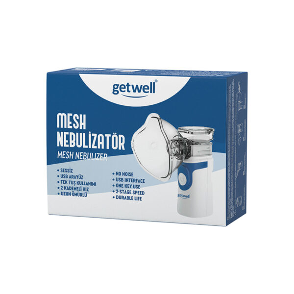 Getwell Mesh Nebulizatör, ilaç/solüsyonun buharlaştırılarak solunmasını sağlayan taşınabilir nebülizatör cihazıdır. Mesh teknolojisi sayesinde sıvıyı ince partiküller hâlinde nebülize ederek solunum yollarına iletilmesine yardımcı olur. Kompakt ve hafif yapısı, özellikle evde bakım süreçlerinde ve seyahatte kullanım kolaylığı sağlar.