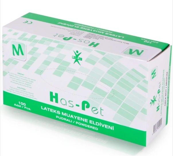 Haspet Lateks Pudralı Muayene Eldiveni – Medium Orta Boy