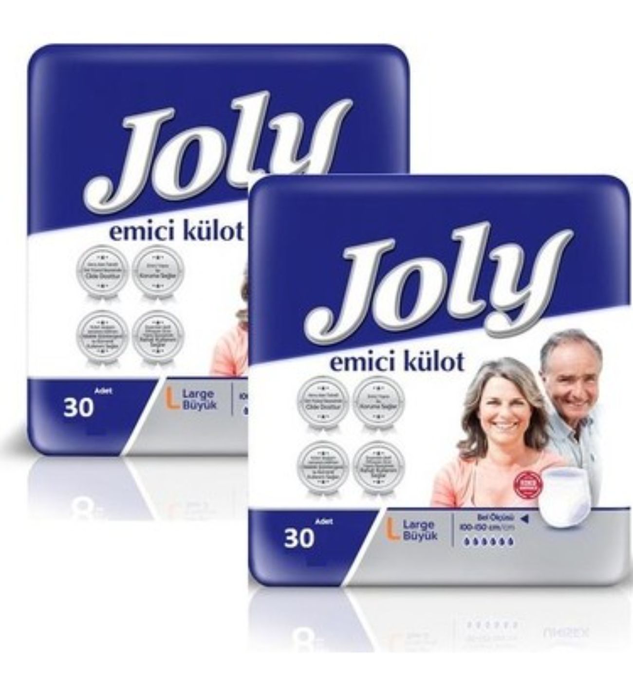 Joly Emici Külot Hasta Bezi 60 Adet Büyük Boy (L), idrar kaçırma problemi yaşayan yetişkinler ve hareket kısıtlı bireyler için özel olarak tasarlanmıştır. Külot formundaki yapısı sayesinde hem giyimi kolaydır hem de günlük yaşamda fark edilmeden kullanılabilir.