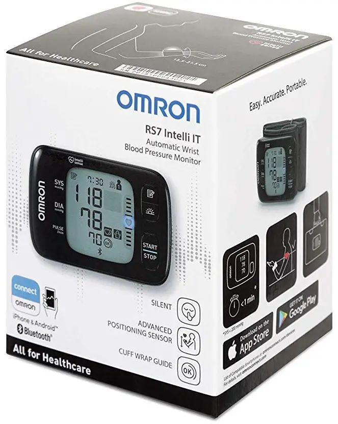 Omron RS7 Intelli IT bilek tipi dijital tansiyon aleti, gelişmiş sensör teknolojisiyle evde profesyonel düzeyde tansiyon takibi sağlar. Bluetooth bağlantısı sayesinde ölçüm sonuçlarınızı Omron Connect uygulamasıyla akıllı telefonunuza aktarabilir, geçmiş ölçümleri kolayca izleyebilirsiniz.