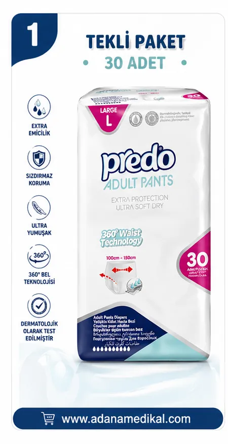 Predo emici külot, hijyenik yapısı ve pratik kullanımı sayesinde evde bakım süreçlerinde güvenle tercih edilebilir. Large (L) beden seçeneği ile farklı vücut tiplerine uyum sağlar.