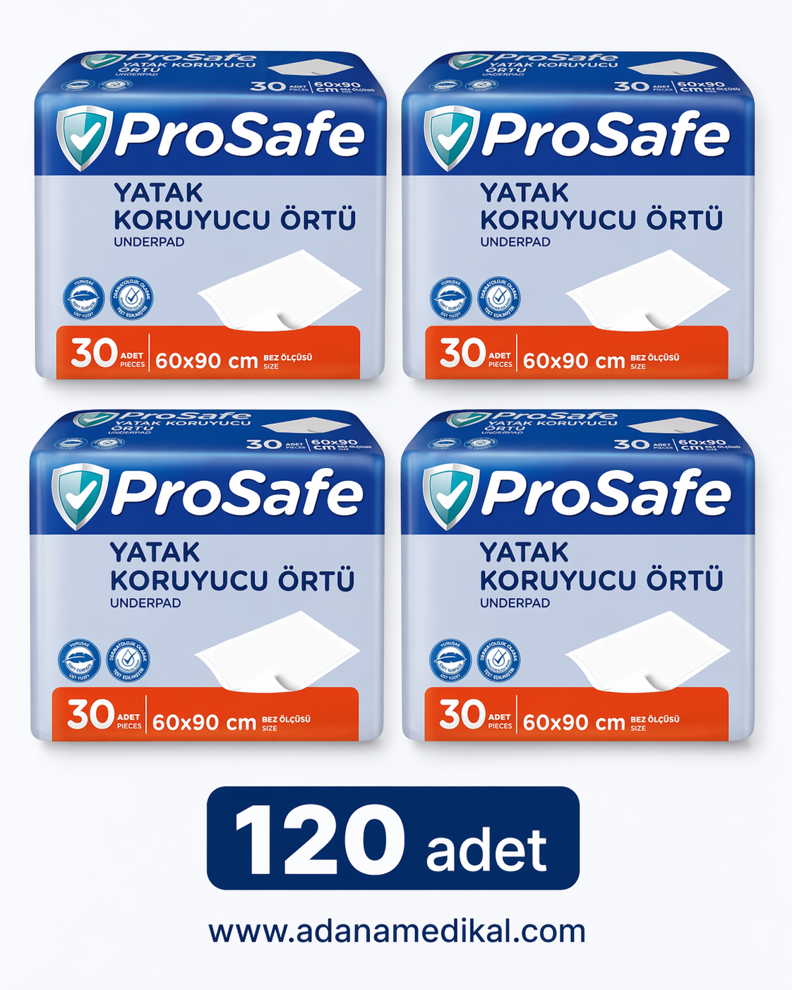 Prosafe Yatak Koruyucu Örtü 60×90 cm 120 Adet, yatak, koltuk, sandalye ve bakım alanlarını sıvı sızıntılarına, neme ve kirlenmeye karşı korumaya yardımcı olan tek kullanımlık hijyenik koruyucu örtüdür. Hasta bakımı, yaşlı bakımı, çocuk bakımı ve günlük hijyen ihtiyaçlarında pratik kullanım sağlar.