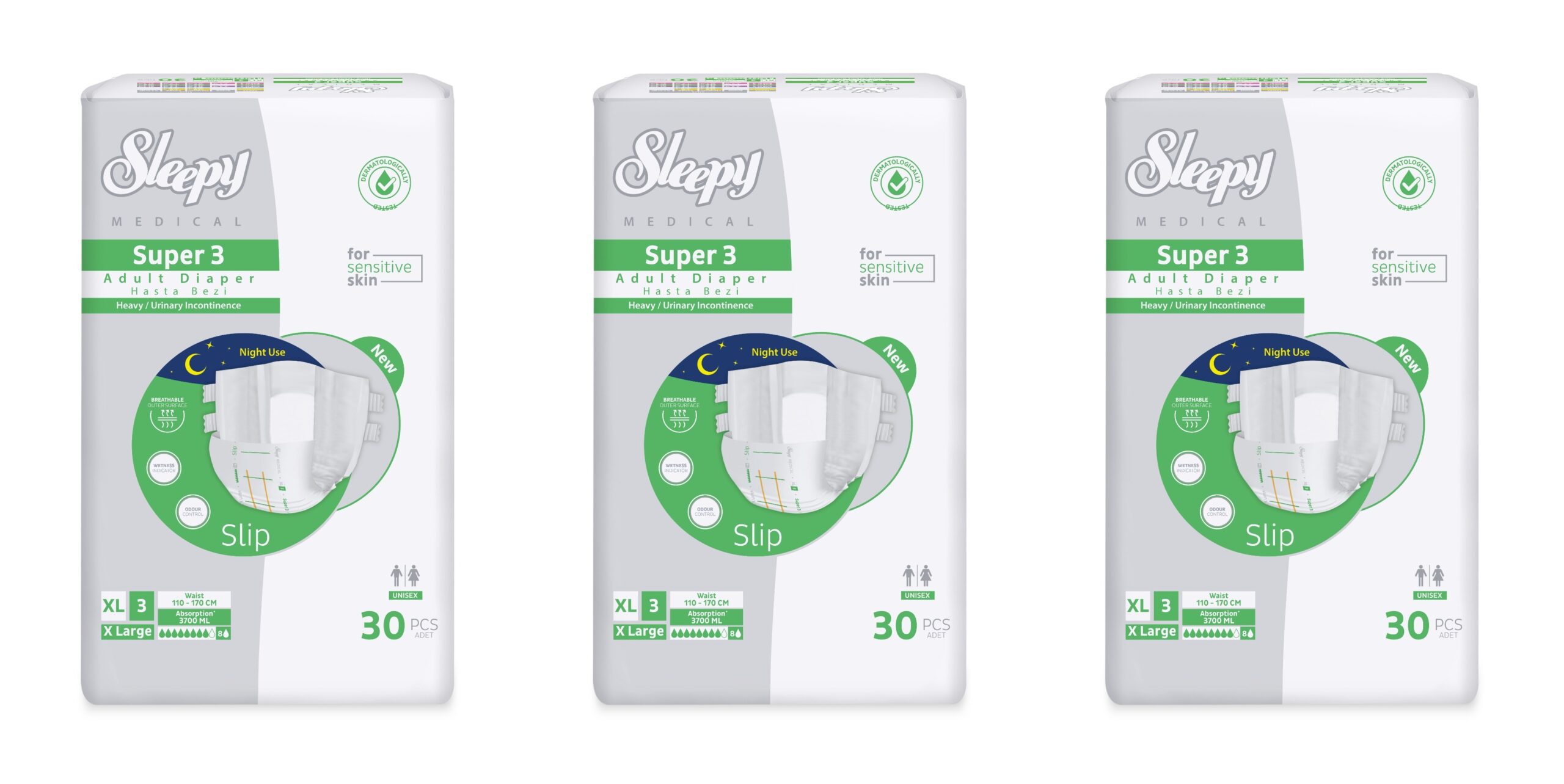 Sleepy Medical Süper 3 Belbantlı XL 90 Adet hasta bezi, çok yüksek emiş gücü gerektiren durumlar için geliştirilmiş güvenilir ve konforlu bir yetişkin bakım ürünüdür. 3700 ML emiş kapasitesi sayesinde sıvıyı hızla emmeye yardımcı olur ve uzun süre kuru kalma hissini destekler.