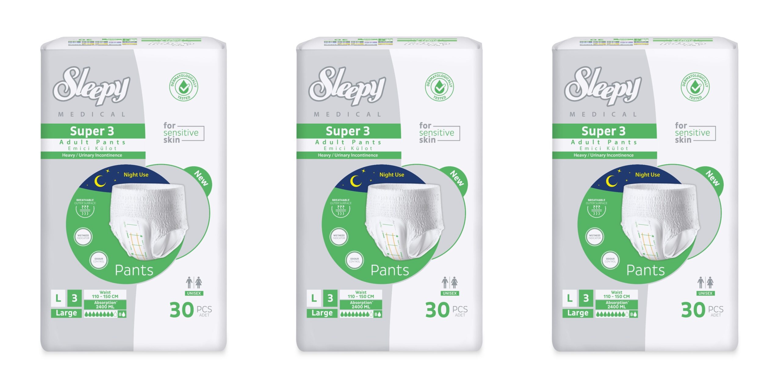 Sleepy Süper3 Emici Külot Yetişkin Bezi Büyük Boy (L) 90’lı 3 Paket